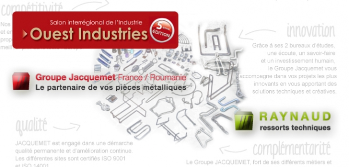 Le groupe Jacquemet et Raynaud Ressorts Techniques seront présents au salon Ouest Industries du 2 au 4 juin 2015