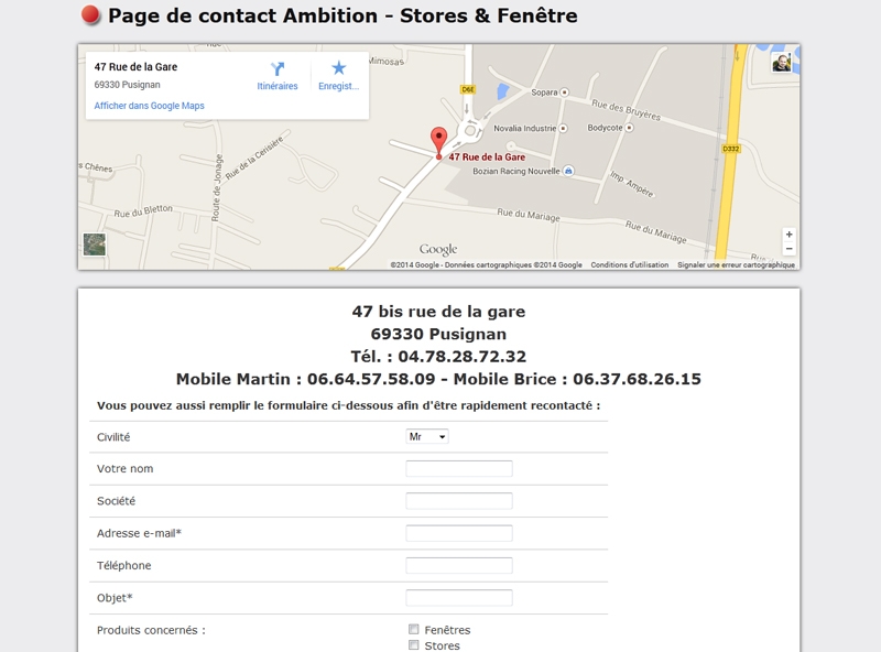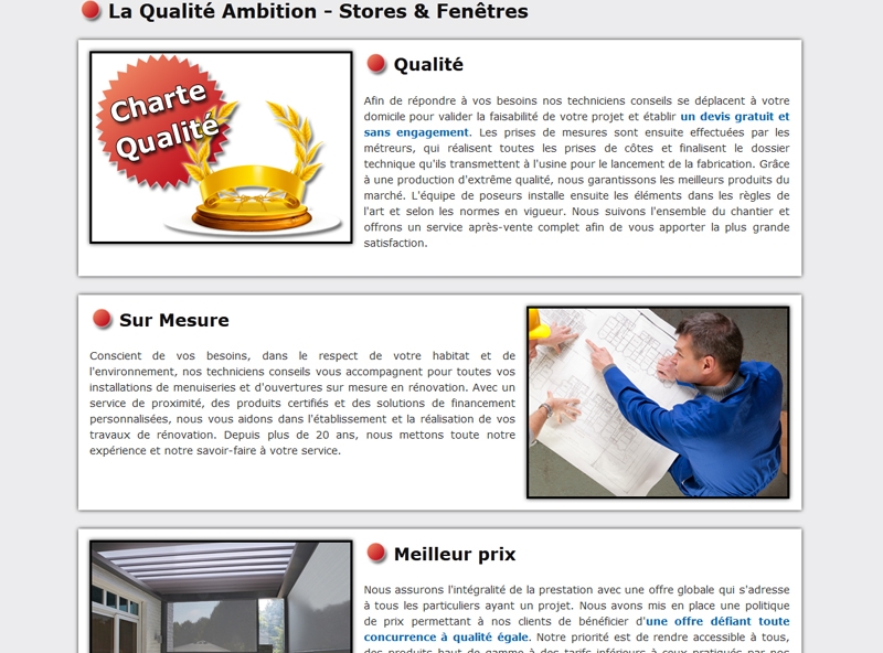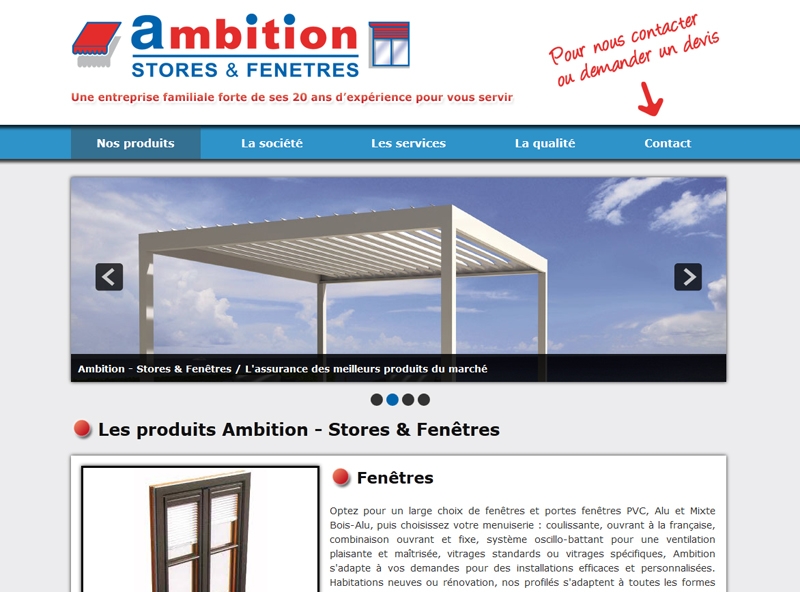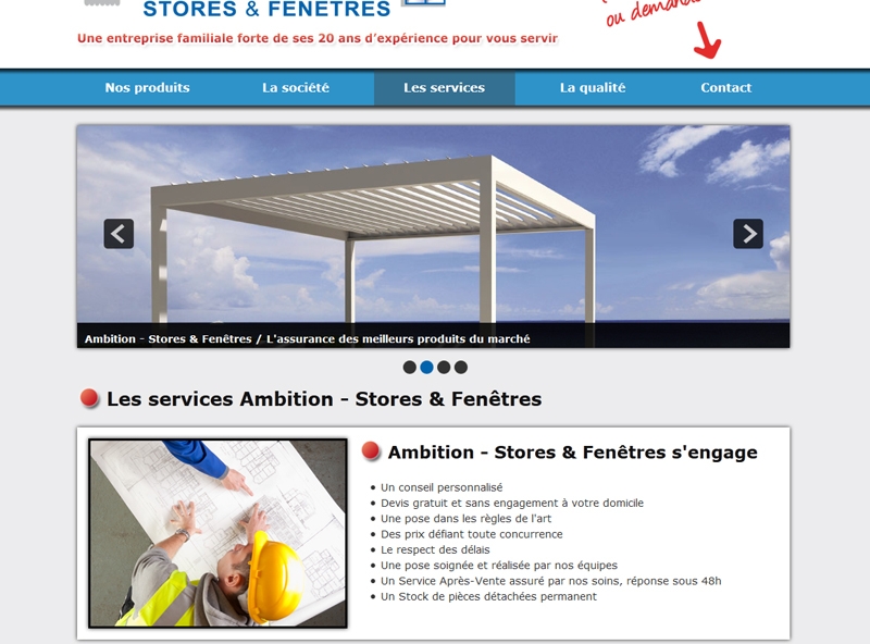 www.ambition-stores-fenetres.com est un site de présentation professionnel sur-mesure, en effet, il comprend :