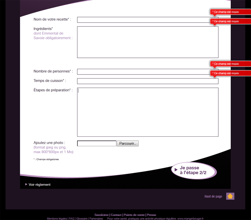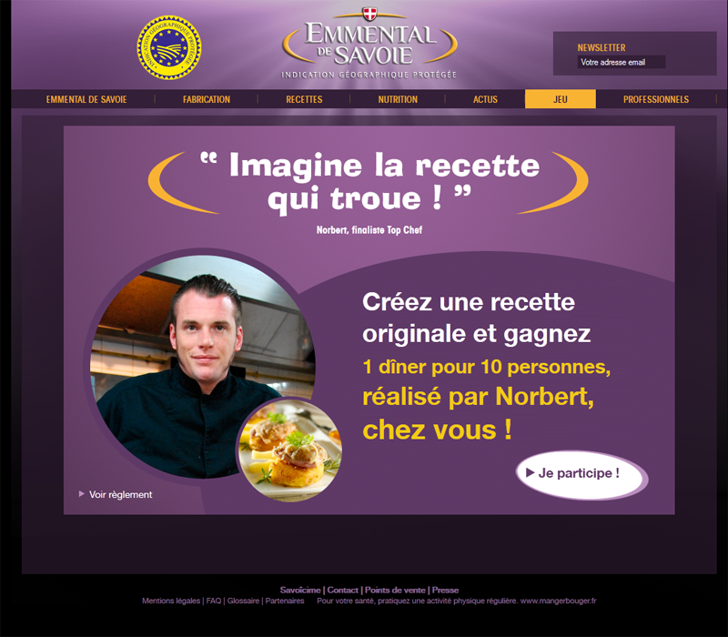 Conception technique d'un jeu concours Emmental de Savoie 2012. Développement du questionnaire et de ses animations pour assurer le bon déroulement du module sur le site Emmental de Savoie.