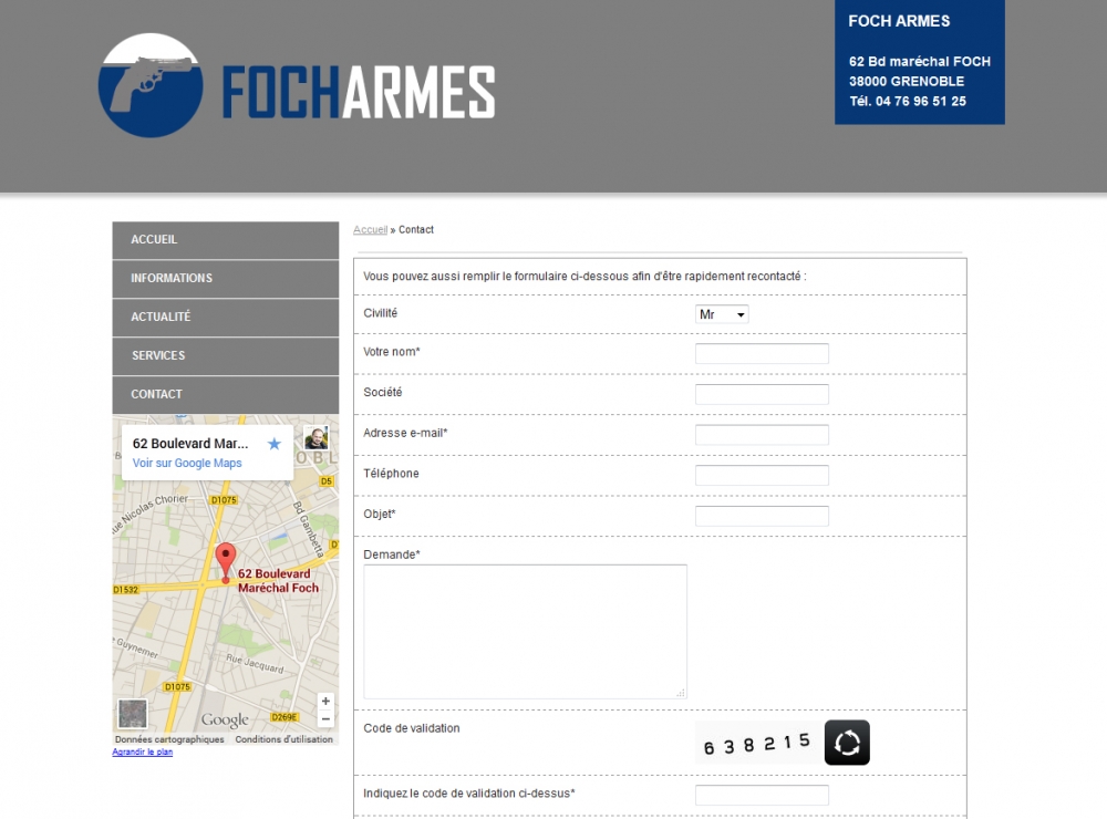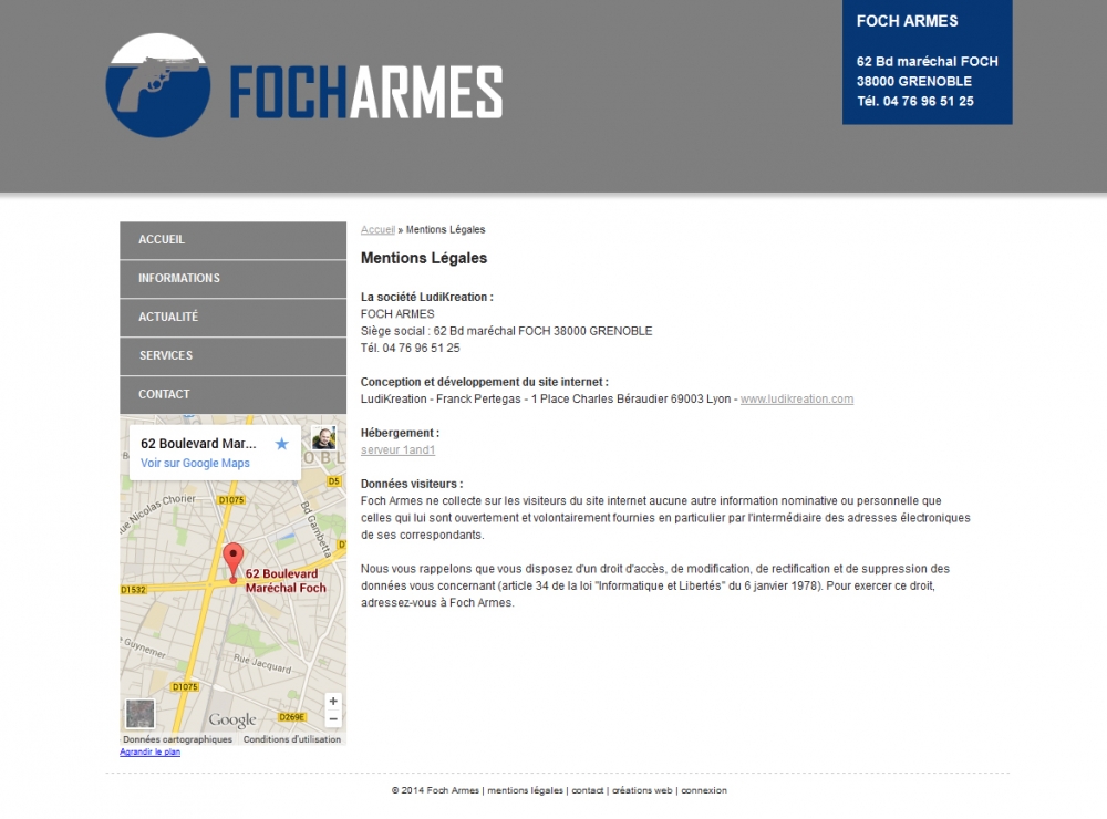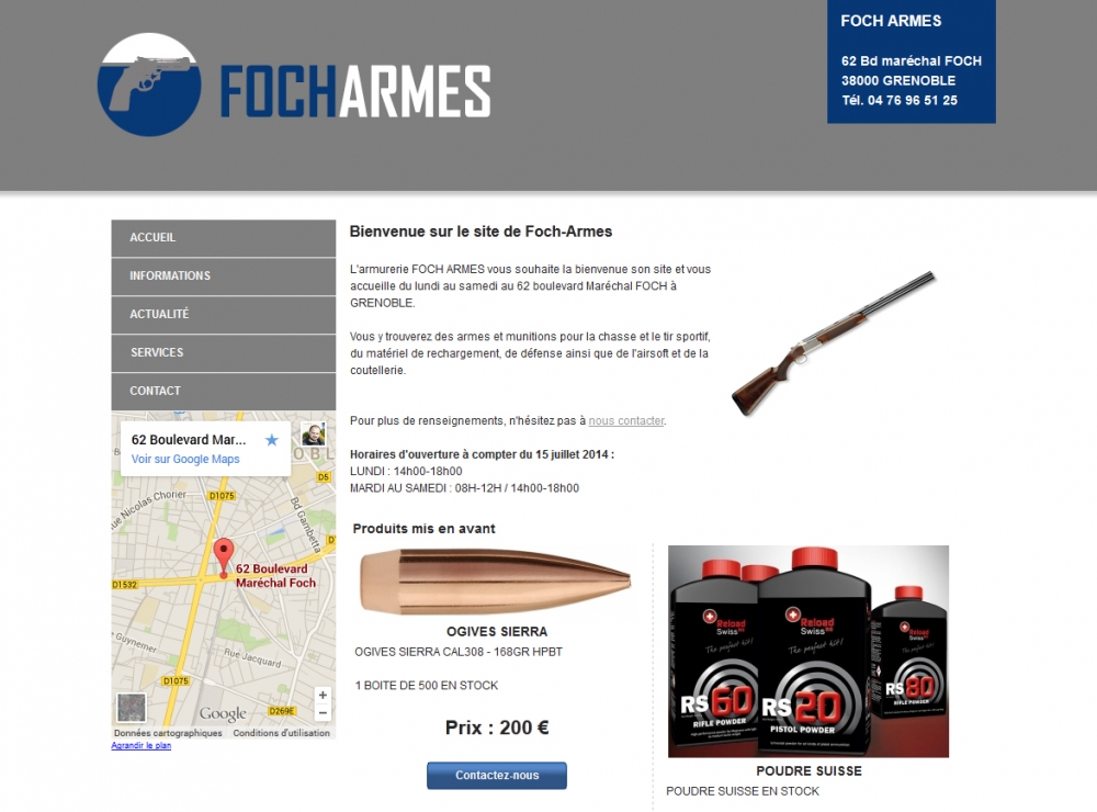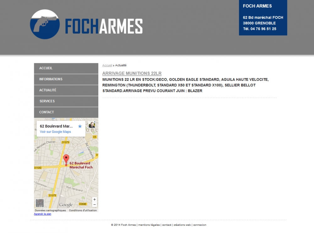 Foch Armes, le site de l'armurerie à Grenoble. Petit gestionnaire de contenu réalisé par LudiKreation, clair et simple d'utilisation.