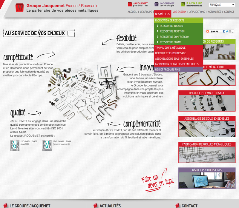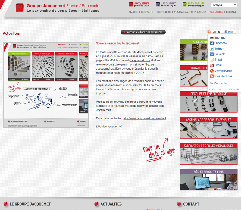 Une conception et refonte sur-mesure du développement technique du site web du Groupe Jacquemet. Un développement sur mesure qui permet la gestion de certaines parties du site web via une administration simple, fluide et ludique.