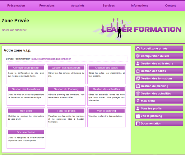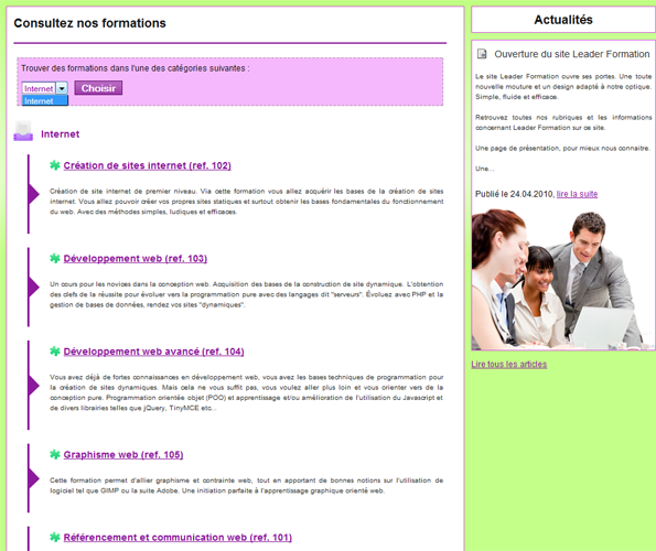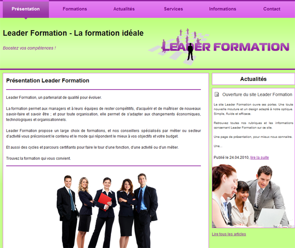 Leader Formation est une société spécialisée dans la formation et couvrant de multiples domaines professionnels. Découvrez via le site internet, toutes les sessions de formations proposées par Leader Formation et validez une date de formation dans la catégorie souhaitée. La formation permet aux managers et à leurs équipes de rester compétitifs, d'acquérir et de maîtriser de nouveaux savoir-faire et savoir être, et pour toute organisation, elle permet de s'adapter aux changements économiques, technologiques et organisationnels.