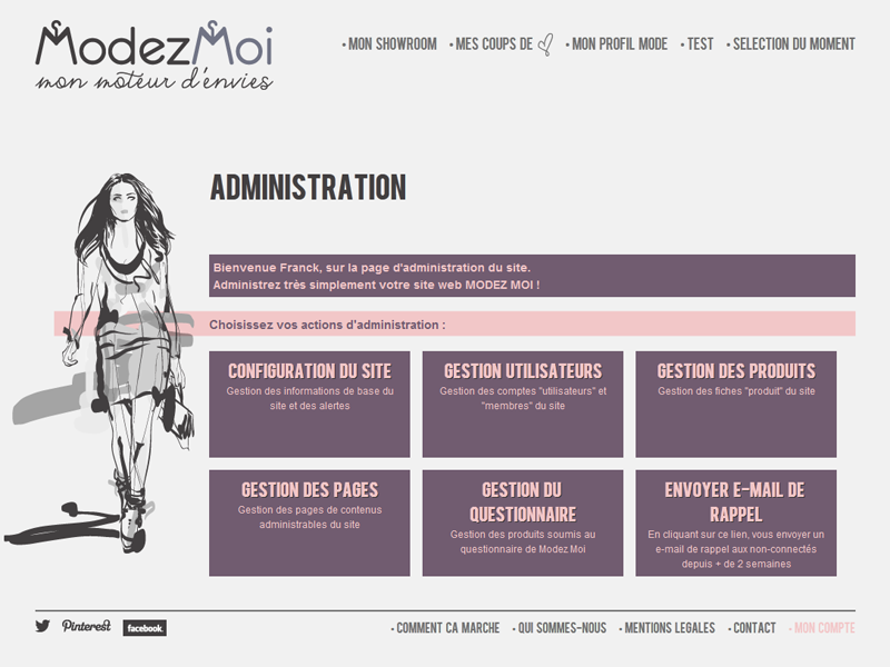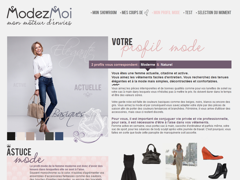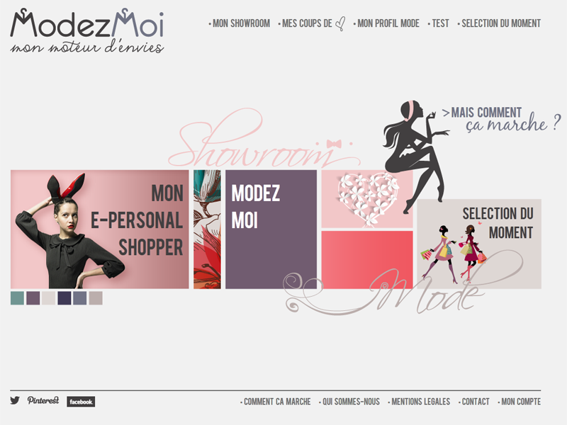 Conception et réalisation sur-mesure du développement technique du site web ModezMoi. Développement web sur-mesure pour un site dynamique avec de multiples modules de calcules et de filtres. Site web dans le milieu de la mode, avec analyses de profils.