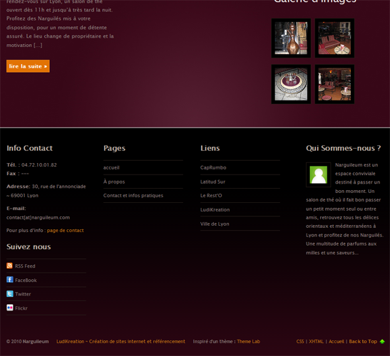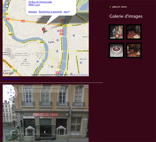 Narguileum est le site du salon de thé du même nom à Lyon 1er. Ce site permet d'obtenir toutes les informations nécessaires concernant le lieu et les évènements à venir. Le site fût réalisé dans le but de facilité sa gestion et est optimisé pour travailler le référencement. Les propriétaires veulent toucher les réseaux sociaux et ainsi agrandir leur notoriété dans les soirées Lyonnaises. Un site plaisant à l'image du salon.