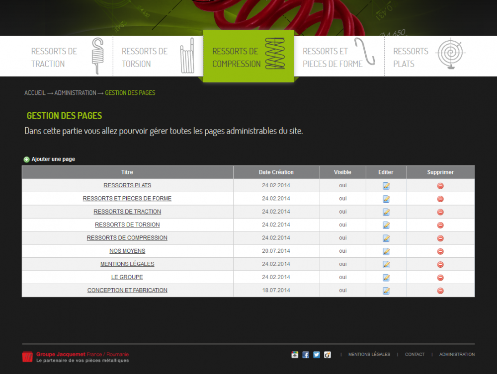 Le site web de Raynaud Ressorts Techniques est composé de plusieurs éléments indispensables pour son fonctionnement :