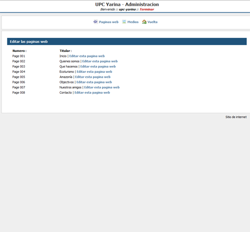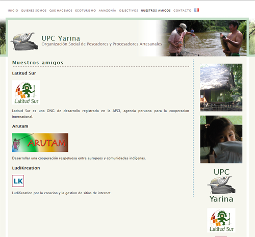 UPC Yarina Tours est un site réalisé dans le but d'aider une communauté de l'Amazonie Péruvienne à développer l'écotourisme. Une idée issue d'une ONG basée en Équateur et au Pérou, qui s'appelle Latitud Sur, et LudiKreation a prit en main la réalisation du site. La mission était d'aller sur place, à Iquitos au Pérou, et de créer le site ainsi que former du personnel Péruvien sur la gestion de ce dernier. Une vrai aventure et une expérience de travail unique au cœur de l'Amazonie Péruvienne.